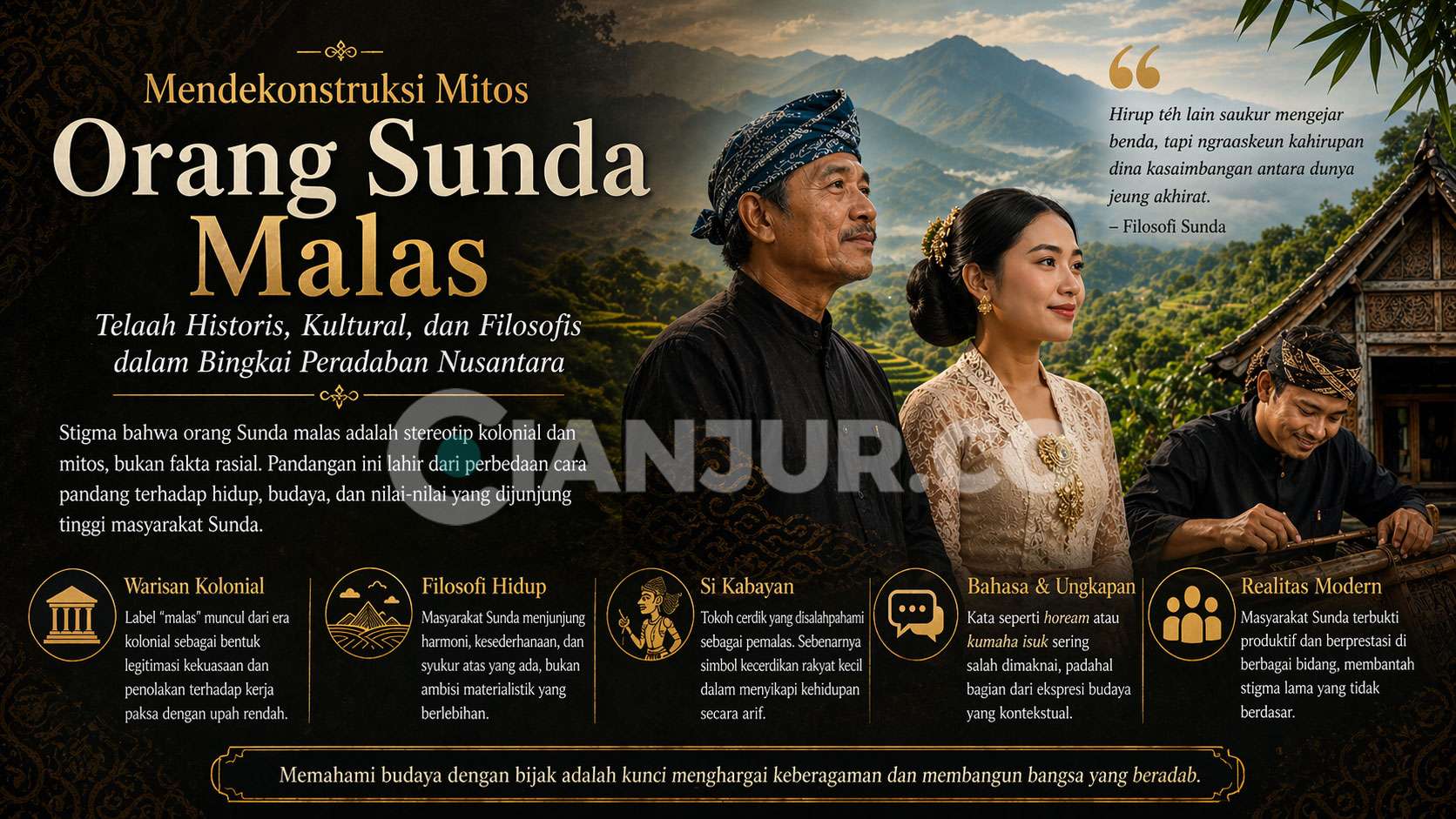 CIANJUR.CO – Dalam khazanah wacana sosial di Indonesia, terdapat sebuah stigma yang kerap kali berulang secara laten, yakni anggapan bahwa Orang Sunda Malas. Narasi ini bukan hanya simplifikasi yang problematik, tetapi juga cerminan dari konstruksi historis yang telah mengalami distorsi makna. Dalam perspektif akademik, pelabelan semacam ini tidak dapat dilepaskan dari dinamika kekuasaan, relasi kolonial, serta perbedaan paradigma dalam memaknai etos kerja dan kehidupan.